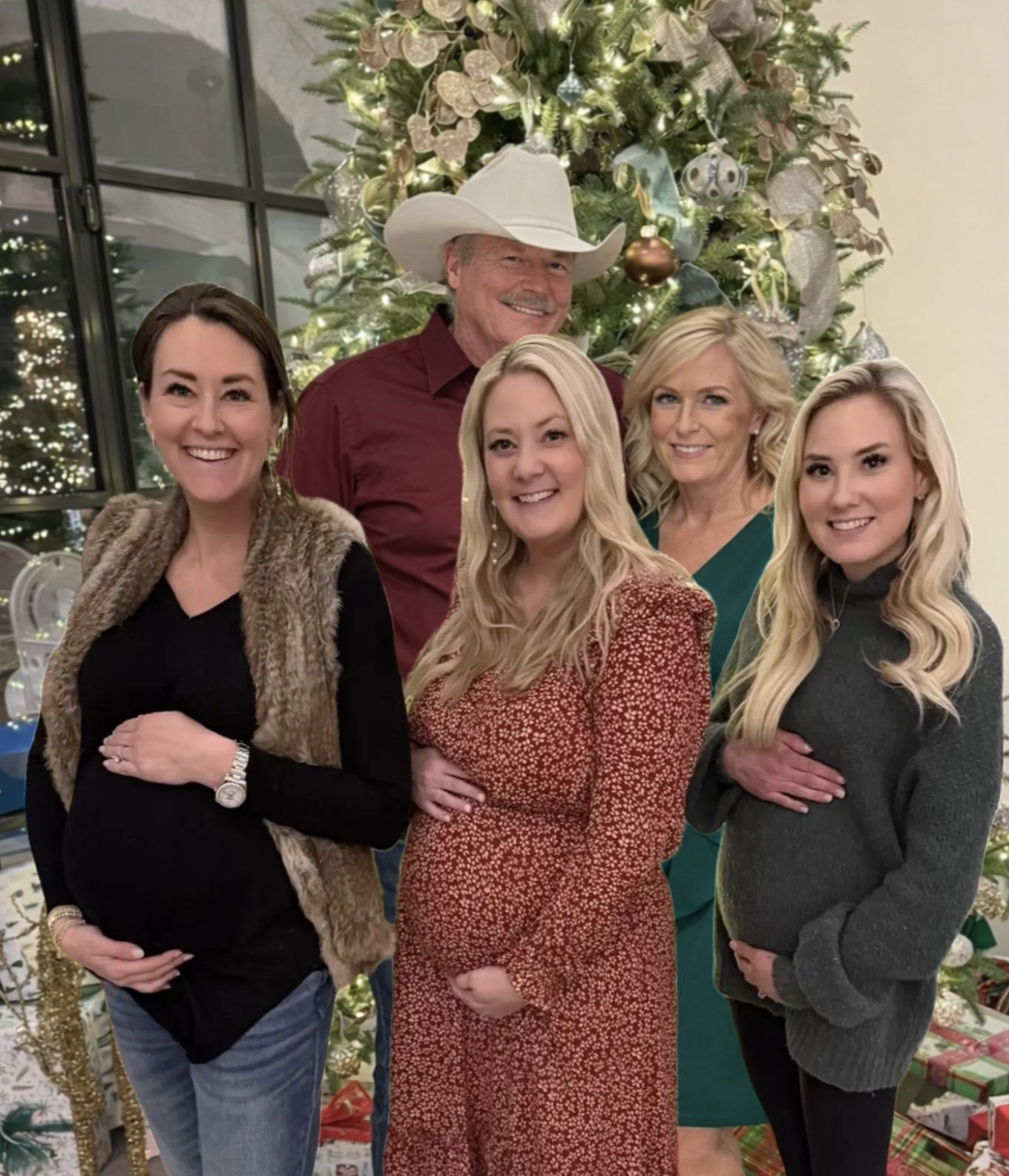 The accompanying photo radiated warmth and celebration. Standing before a beautifully decorated Christmas tree, the three glowing moms-to-be cradled their baby bumps, smiling with unmistakable excitement. The moment felt intimate yet universal — a snapshot of a family expanding, and a future filled with love.
